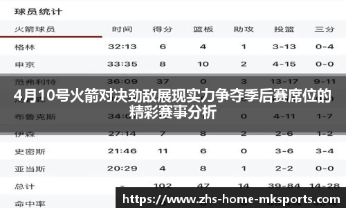 上一篇:4月10号火箭对决劲敌展现实力争夺季后赛席位的精彩赛事分析